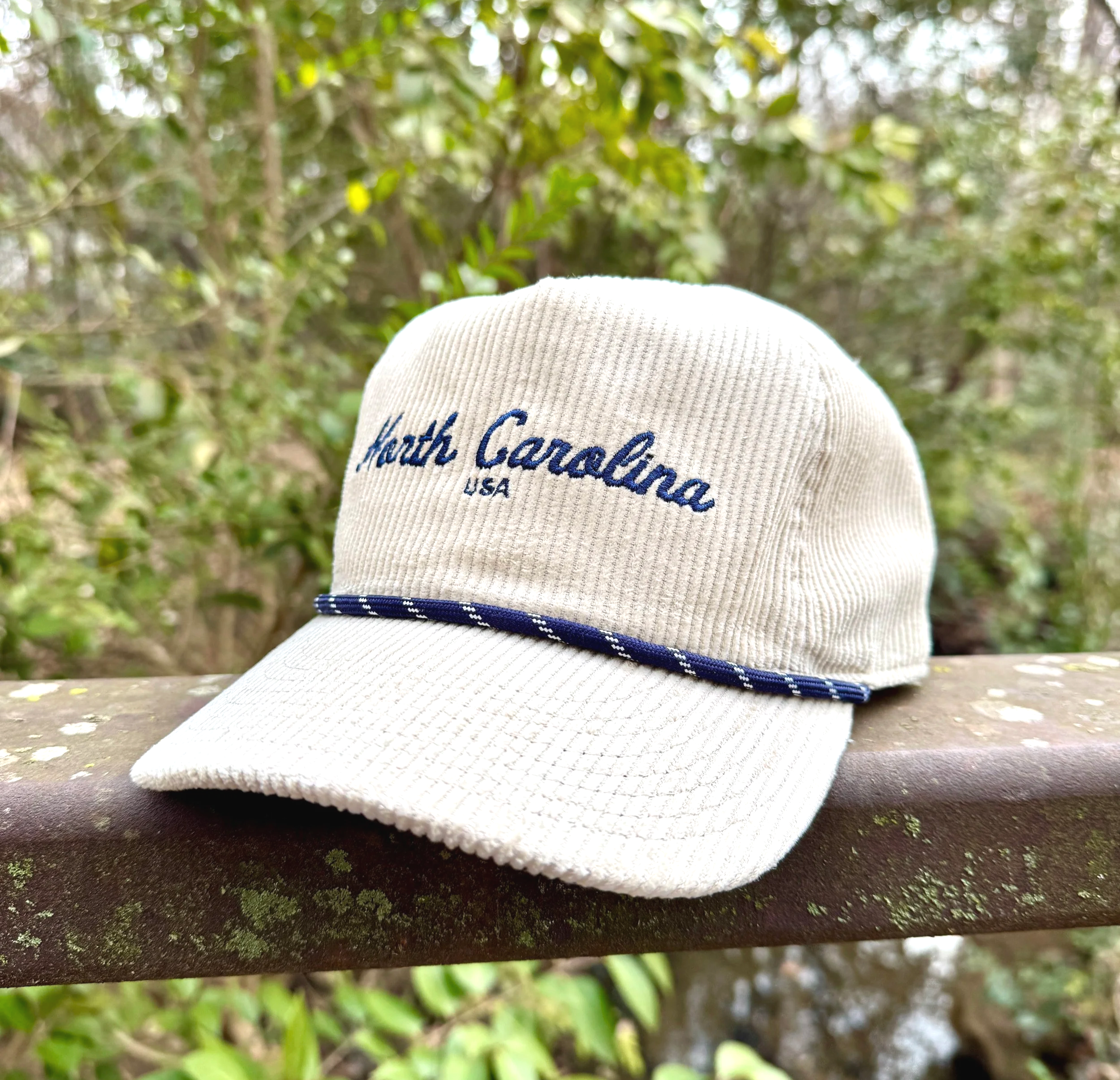 New to our lineup, the vintage style North Carolina USA Rope Snapback, a stylish addition that blends heritage and modern wearability. This 5-panel snapback features a navy embroidered North Carolina face and a matching navy rope accent, offering a refined, timeless charm that pairs easily with everyday looks. Rep’ the state of North Carolina with pride.